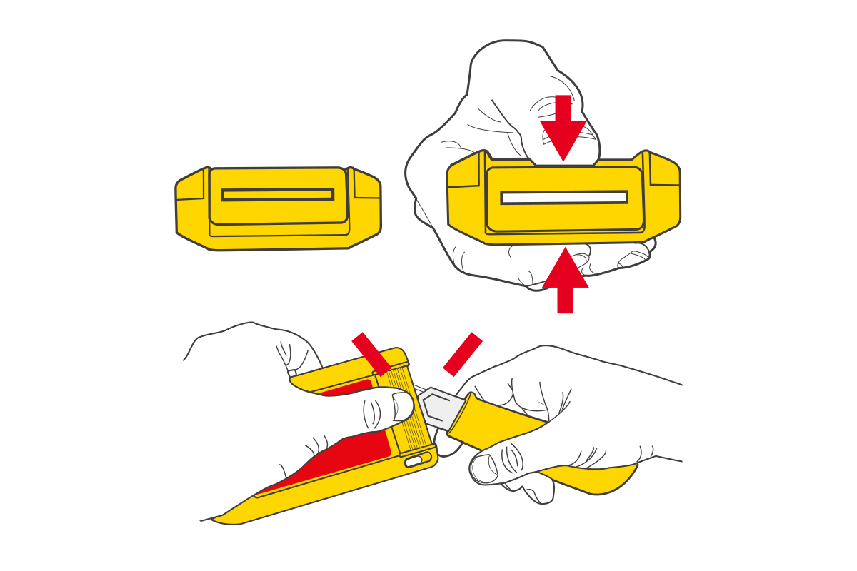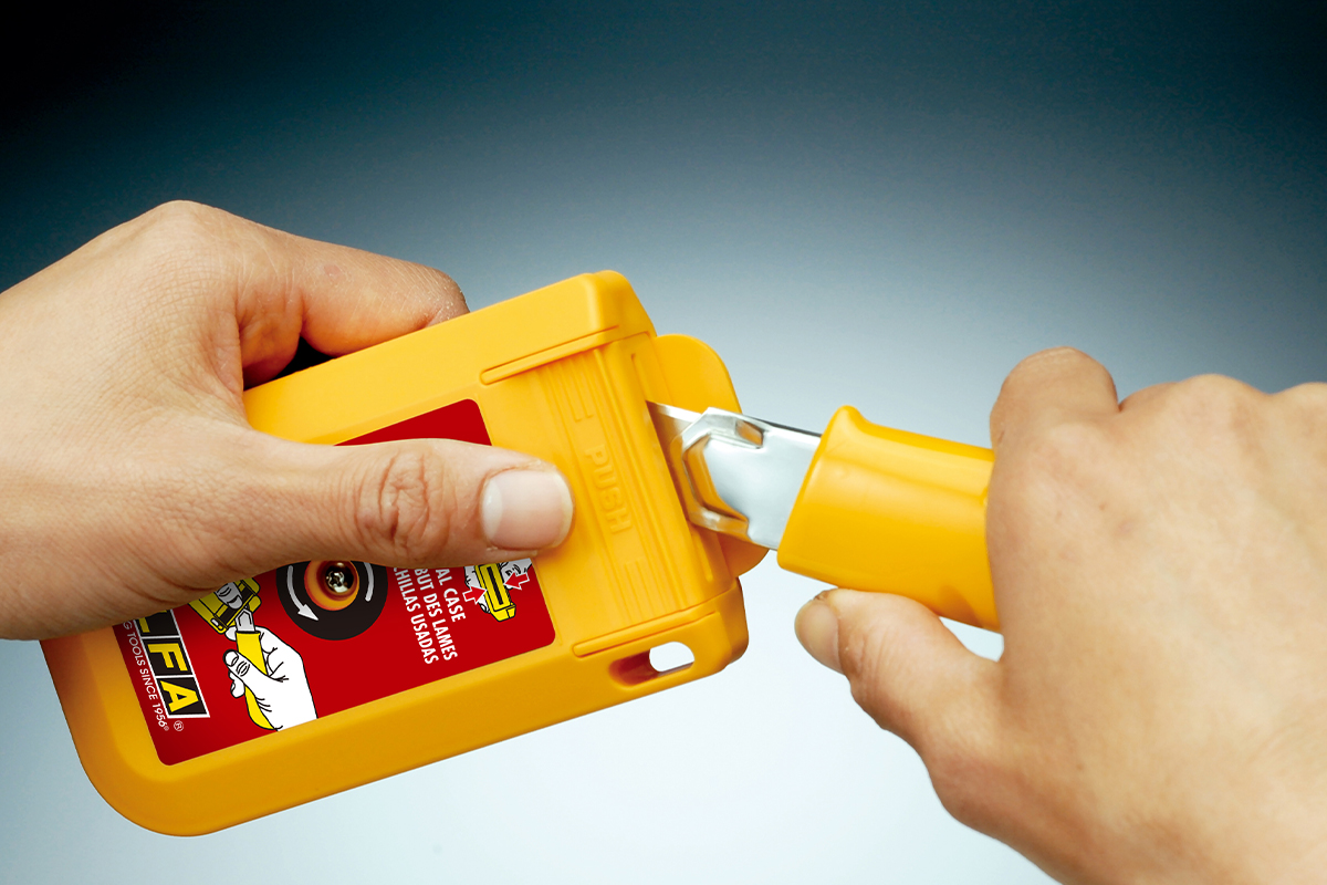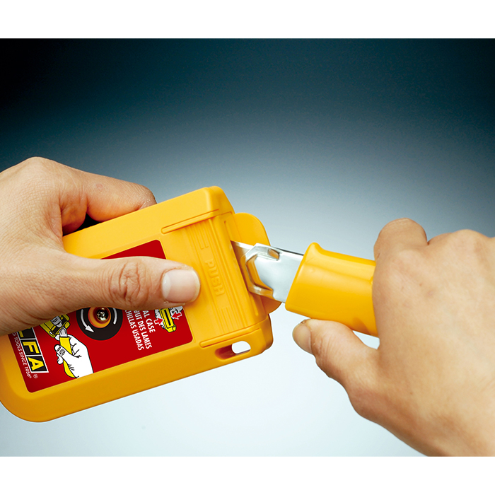 Z uporabo reže za lomljenje rezil odlomljeni segmenti padejo neposredno v notranjost, kar zmanjšuje tveganje, da bi rezila po nesreči odletela.