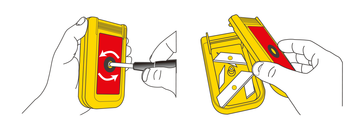 - Pritisnite vrh DC-4, da se odpre reža za lomljenje rezila.