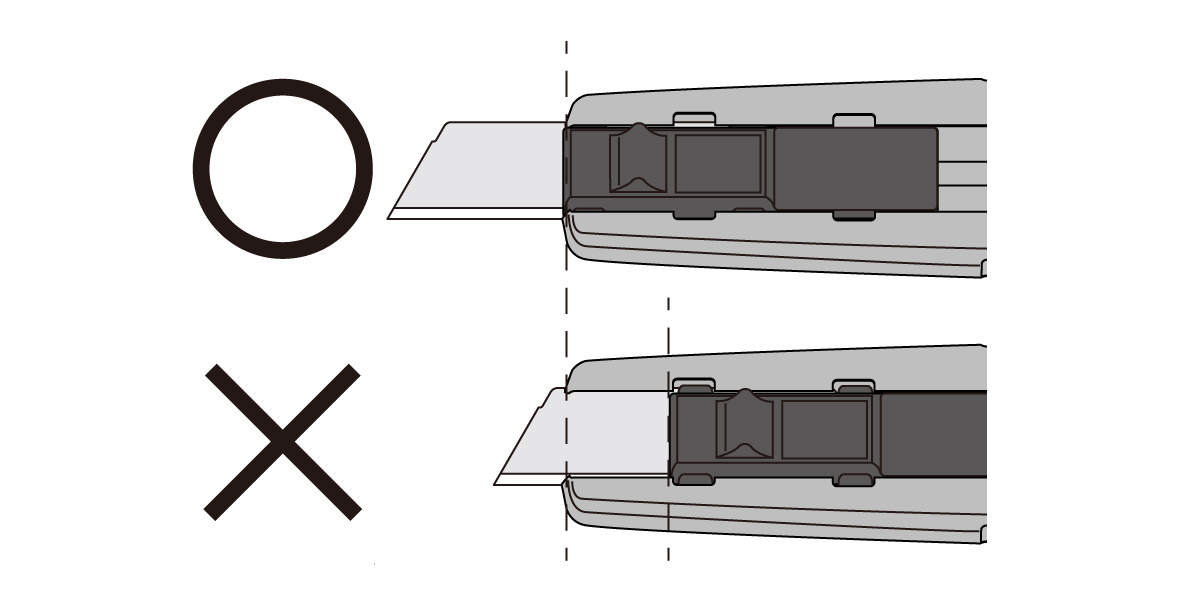 - Pri uporabi mora biti rezilo popolnoma izvlečeno. Ustavitev drsnika na pol poti je lahko nevarna, saj lahko rezilo pade ven.*