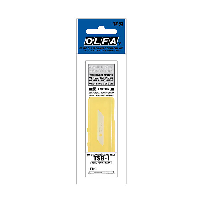 5 rezervnih rezil, posebej zasnovanih za OLFA nož za rezanje zgornje plasti “TS-1”, v plastični škatlici. Pakirano v plastični vrečki.